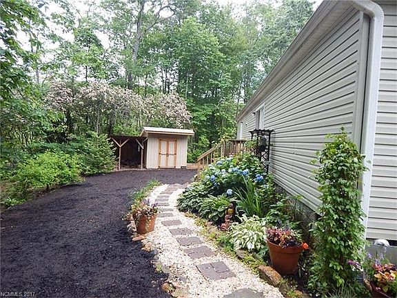 If you want wooded privacy with plenty of room to expand, you need to see this place. It has a nice 2009 doublewide with 3 bedrooms and 2 baths. It has a very spacious kitchen with breakfast bar. The big master bedroom has a huge master bath with garden tub. Outside, you will enjoy numerous outbuildings and extensive landscaping. It is nestled in a very private 5.37 acre lot with numerous springs and two ponds. Live in the current home while you build your dream house! Convenient to Pisgah NF.