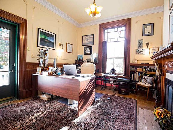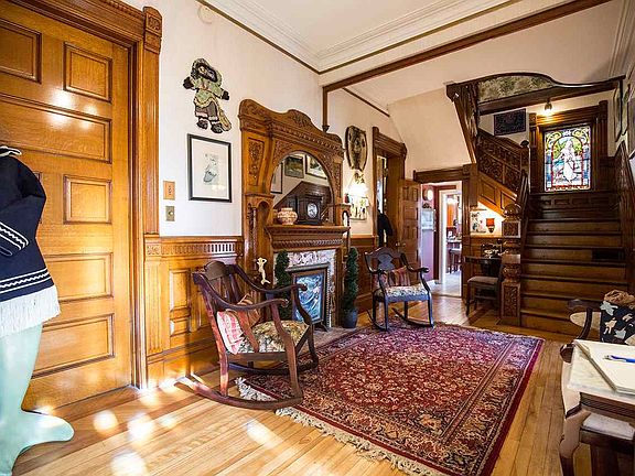 STUNNING 1898 Rhodes & Curry Georgian home is located on Amherst's famous and historic Victoria Street. The house has long been admired in the area and is a testament to lives well lived. Lovingly maintained the house retains its extensive carved wood embellishments, multiple stained glass windows, five handsome fireplaces (currently not used), high ceilings and gracious living areas. The layout of the home is ideally suited to the operation of a B&B with natural divisions between the business and family living area. Alternately, it is easily becomes a grand family home simply by opening the solid wood pocket doors on the main level. This home offers ample living space on three floors. Enter the stunning large foyer with a staircase that wouldn't be out of place on Downton Abbey. From the foyer you will find not one but two formal dining rooms, living room, office, large eat in custom kitchen with ribbon mahogany cabinetry, laundry room, half bath, garage access & access to the side veranda and deck. Up the main staircase or using the back kitchen staircase you will find on the second floor five bedrooms, four with en-suite baths and the fifth with a full bath nearby. A large foyer, sitting area and linen press complete this floor. The third floor features two more bedrooms, full bath (the sixth one in the home), family rec-room, storage space, and a studio room that is currently used as a walk-in closet. The character and charm within this home is a rare find. There's even a secret hiding-place in the home that will only be revealed to the new owner! The home is heated with a new very efficient natural gas furnace. Outside the property truly speaks for itself with a manicured property and beautiful corner lot. For the buyer wishing to operate the home as a B&B there is ample guest parking. Furnishings in this home are negotiable. Amherst is a vibrant, welcoming community between Halifax, Moncton, PEI and only 15 minutes from warm ocean beaches! CALL TODAY!