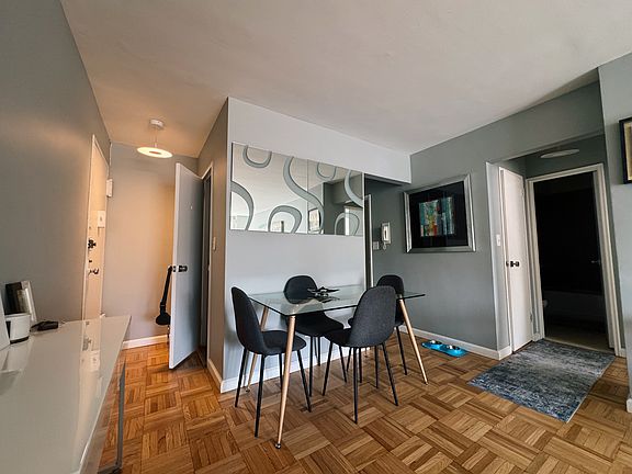Inside, you'll find an oversized king bedroom with a large custom built-in closet, a bright and airy living/dining space, and a windowed galley kitchen complete with a dishwasher and gas-range stove. With parquet hardwood floors throughout, central air, and abundant storageincluding a pantry with French doorsthis quiet fifth-floor home offers both style and functionality in one of Manhattan's most desirable neighborhoods.