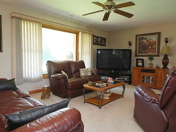 Immaculately maintained ranch with 1.46 acres, detached 28x44 garage with forced air,attached service garage,& an attached 2 car garage so you can store all of your equipment! Features 3 beds and 3 updated baths with over 4000 sq.ft. The newly finished master wing features a large sitting area & vaulted ceiling. Master bath has whirlpool tub/separate tile shower & heated tile floors. Deck off the master with wonderful views. The two other beds feature w/in closets. Kitchen is newly updated featuring Brazilian cherry hardwood floors, oak cabinets, tile backsplash and stainless steel appliances. The cozy sitting area off of the kitchen has a gas fireplace and leads to the gorgeous 4 seasons room with wood ceiling. Large deck surrounds the 3 year old pool. Walk out basement includes game room, wet bar, full bath, & rec room. Home had security system, and Generac back up generator! Landscaping includes mature trees, large rock boulders, irrigation system w/rust inhibitor,& lighting.