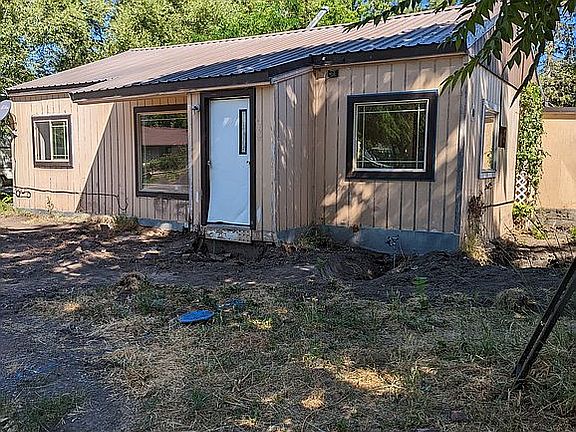 House has no foundation. The little building has a foundation, two finished rooms, carport on east side, 360 sq ft. Corner lot, irrigation well, mature English walnut tree. As improvements happen, price goes up.