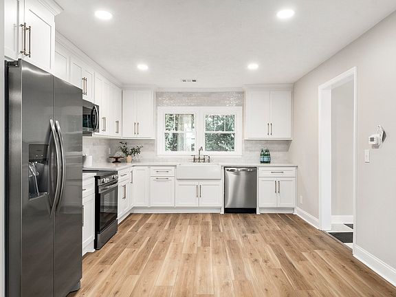Step inside to find a bright, open interior with fresh paint, brand-new windows, and durable LVP + LVT flooring throughout. The kitchen has been completely reimagined with new cabinetry, a farmhouse-style sink, quartz countertops, and stainless steel appliances — perfect for both everyday living and hosting.