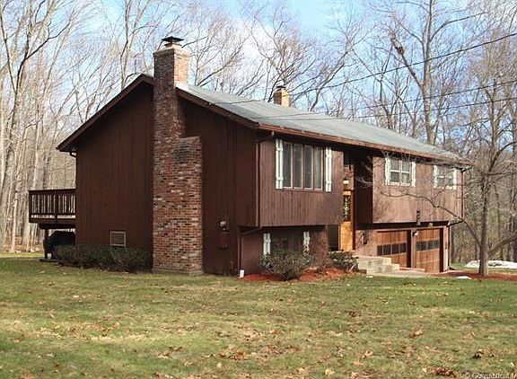 Fantastic VALUE!, 3 bedroom, 1.5 bath, family room, fireplace, 5 yrs old central air, all new carpets on main floor, new kitchen floor and newly painted cabinets, nice dining area in kitchen plus formal dining room, 2 car garage. Beautiful 2yr old retaining wall along the paved driveway, 14x10 deck for great summer entertaining, 1.05 level and private acres, close to highway and just 10 minutes to UCONN. Walk to river and town parks, surrounded by well kept homes. BEAUTIFUL CONDITION OVERALL! this home will not last. Under 200,000 IN TOLLAND with central air AND 2 CAR GARAGE? A GREAT BUY!!