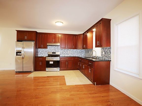 single family for rent Full-Gut Renovated Single Family Home that is fully detached and includes an incredible backyard space with a Deck. This 2 Bedroom and 2.5 Bath house measures ~1,716 sq. ft. with plenty of natural lighting seeping in and has a fully finished Basement & Attic. The large attic space can be used as an Entertainment Center or Storage Space. There's plenty of option with the basement, as there's ample space, a Full Bath, and brand new Samsung Washer & Dryer hooked up. Gorgeous Hardwood Flooring stretching across each floor will make you feel right at home. Features a large Living Room with an Eat-in Kitchen that has brand new Stainless Steel appliances. This house is conveniently located near a CTown Supermarket, which is approx 0.1 miles away or a 2 min. *Virtual Tour available. Link will be shared when you inquire.*