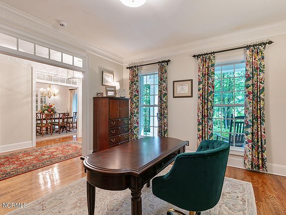 Beautiful brick home on 1.15 Acres in Flowers Plantation in Clayton. Formal Dining Room and Private Office off Wide Foyer. Open Floor Plan offers Great Room with gas log fireplace surrounded by built-in cabinetry and framed television, and surround sound system that extends throughout the house and outside. Eat-in Cook's Kitchen with huge center island, granite counters, stainless appliances including gas cook top, double ovens, and ice maker. Living Area extends to Sun Room with gas log fireplace and access to Deck, Patio, Hot Tub, and Fenced Back Yard. Convenient Butler's Pantry between Kitchen and Dining Room with wine fridge and sink. Main Suite down with Walk-in Closet, separated Dual Vanities, custom-tiled shower, air-jet tub, and separate water closet. Upstairs, 2 Guest Rooms share Jack and Jill Bath, 3rd Guest Room with Full Bath en suite, plus Bonus Room and cozy Office Nook. Extras features include sealed crawlspace with dehumidifier, hardwired security system, 2 attached garages with space for 3 cars, large lot that extends into woods to left of house for lots of privacy. Custom Plantation Shutters , shades, and drapes throughout convey. Playset in Back Yard conveys. Gas line for easy grilling to back deck.