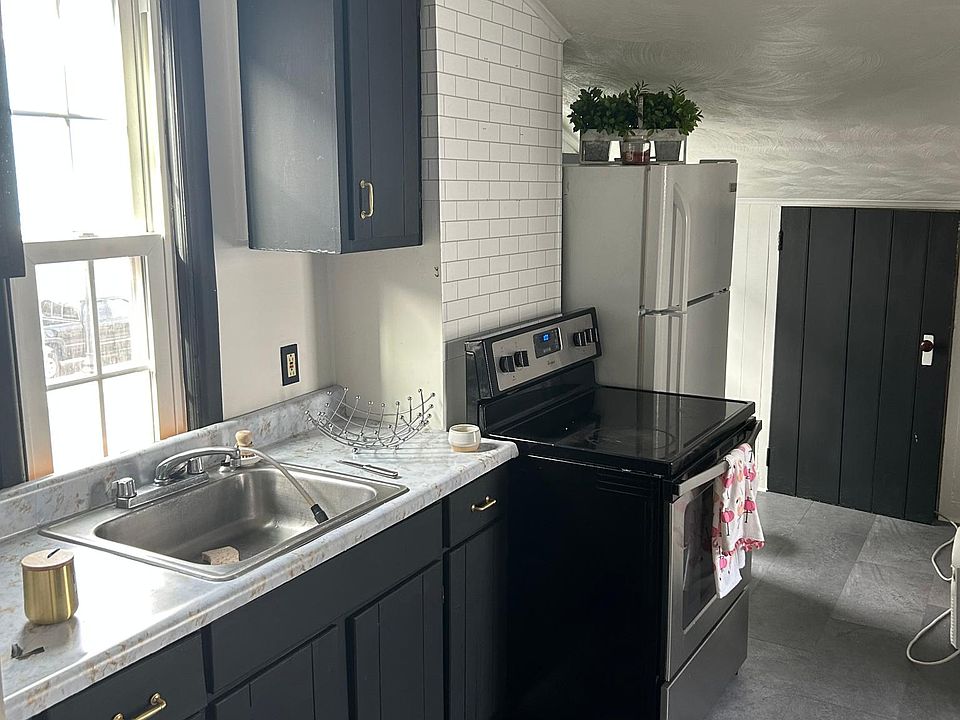 2 bedroom ,with eat in the kitchen and a living room . One walk in closet . This apartment has a lot of closet space and features 2 fireplaces for show only not working . Very cozy and welcome. This property and has private parking , walking distance to downtown. Has coined operated Landry service in the property . Land lord pays for water and requires first and last months rent . Laundry services at the property . No smoking in premises. Private parking Responsible for taking out garbage once a week. Landlord is responsible for snow plowing .