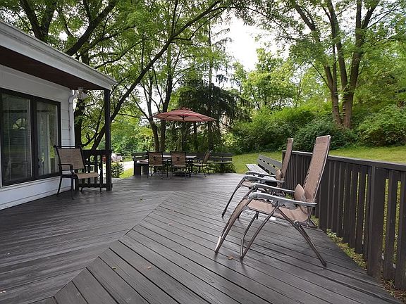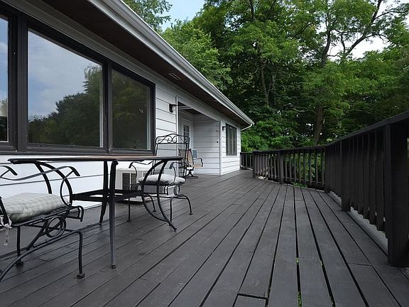 Enjoy this beautiful private setting w/lake views, water falls & the sound of falling water. Enter through perennial gardens w/stone retaining walls, steps & tiered decks. L-shaped dining room & living room w/stone fireplace, walls of windows Eat-in kitchen w/ Waverly granite island & skylight. Bedrooms have hardwood floors. Spacious master bedroom opens to deck. One level living w/ open floor plan plus lower level guest suite & family room Many recent updates: new kitchen, updated bath, fresh interior paint, freshly stained decks, new carpet, new roof & 98% High energy efficient furnace 2017.