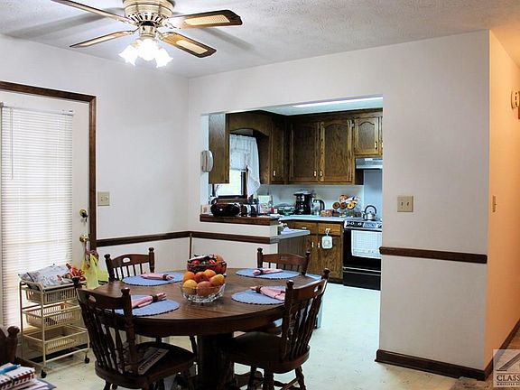 Customized plan, well built and well maintained, the roof is only 6 +- months old! This wonderful split plan design features 3 bedrooms and 2 bath. The living room features an oversized brick fireplace and opens to the spacious dining area. The kitchen features custom build wood cabinets with plenty of counter and storage space. There is a garage with storage closets, as well as detached storage buildings. One of the outbuildings has electricity and water and was legally permitted as a barber shop, this would be a great building for many purposes! Spacious 0.67 acre lot sits above grade, has mature landscaping, beautiful trees, a garden spot, and more. Features a front porch and a rear deck!