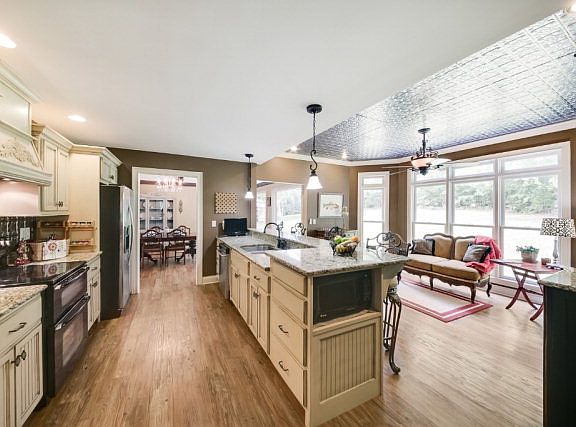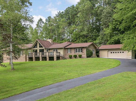Come home to total peace and quiet from the moment you drive down the gently winding driveway. Custom home is tucked away on over 6 acres of wooded privacy. Every room has a custom finish - living space with stacked stone fireplace leads to cook's kitchen. Granite countertops, large eating bar and unique tin ceiling work highlight this area. Hardwood flooring flows on to the vaulted den