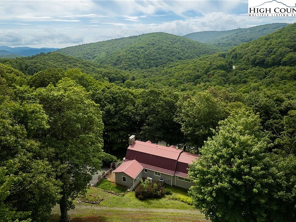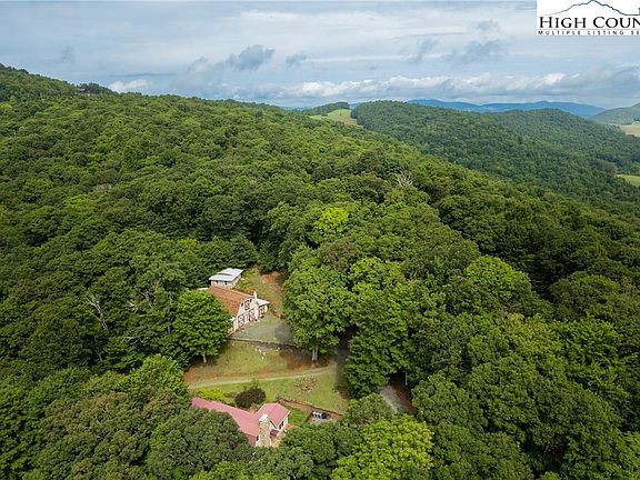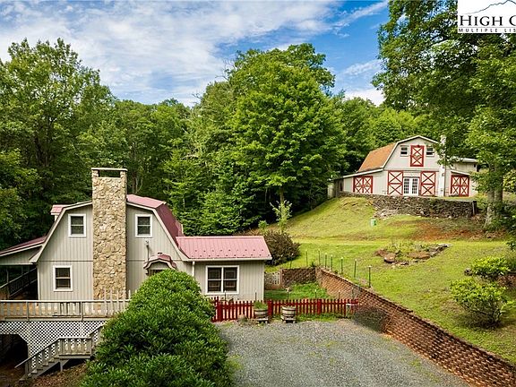 Rare opportunity, 16 gentle acres high above Boone at over 4200'. Only minutes to downtown yet feels a world away. 3 bedrooms, 5 fireplaces, modern kitchen featuring custom Hickory cabinets, Australian Cypress flooring, custom gameroom bar, stained glass windows, T&G walls & ceilings, spa like primary bathroom featuring soaking tub & fireplace, oversized primary walk-in closet with custom built-ins & so much more. Currently seasonal view, with tree trimming you could enjoy the long range view year round from the covered rocking chair front porch. Beautiful wooded acreage with hiking trails & mountain streams. Main level offers living room , dining room, kitchen, oversized vaulted primary bedroom ensuite with fireplace, laundry & 1/2 bath. Upper level offers 2 bedrooms & full bath. Lower level offers game room, wetbar, family room, office, bathroom, bonus room & storage area. Large 2 story barn & storage building offer ample storage & workspace. So many possibilities await from being a full time home, vacation getaway or vacation rental.