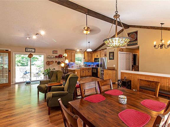 Bucolic, serene, and peaceful nearly 3.5 acre grounds tucked away yet close to shopping and highways! This home is ready for you to unpack your bags and move right in! The open concept floor plan with cathedral ceilings makes entertaining a breeze! The Master Bedroom features an en suite full bath and plenty of closet space. Cozy up in front of the fireplace, enjoy game night with friends in the spacious great room, or relax on the deck which spans the length of the house leading down to a beautiful garden area. Additional features include generator hookup, camper hookup, and a shed!