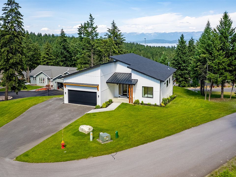 Discover a thoughtfully designed Montana home that blends bright, modern elegance, natural light and stunning lake and mountain views located in Lakeside, MT. Close to Flathead Lake, shops, skiing, & more. This custom home stands apart from the traditional Montana style, showcasing clean architectural lines, warm finishes, & a seamless indoor-outdoor connection. Built in 2022, the 4 bedroom, 3-bath home offers over 4,100 square feet of high-end living space, perfectly situated on a large professionally landscaped lot. Inside, the open floor plan is made for entertaining, w/floor-to-ceiling windows, massive sliding glass doors that lead to a huge polymer deck & spotlights perfect for displaying art. A gas fireplace adds cozy warmth. The newly finished walk-out basement features high ceilings, a bedroom & bath, & wet bar in the big recreation room. This modern, well-kept home is move-in ready. See Feature Sheet for exclusive details. Agent is related to Seller.