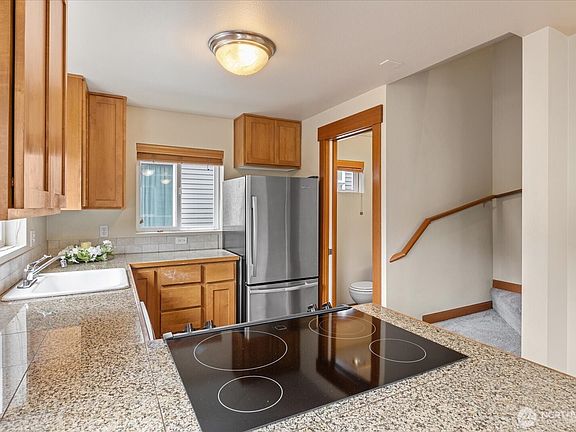 Water view from two bedrooms upstairs! Fenced back yard and 0 HOA. Chic design and inspiring Sound, mountains and city views from this exceptional townhome on Beacon Hill. Three level unit boasts hardwoods, fixtures, granite, custom tile. Stylish open areas, kitchen with breakfast bar, upper level offers two bedrooms, full bath; lower level with third bedroom, full bath. Enjoy the outdoors on your private patio. Dynamic setting abundant with the best Seattle has to offer!Conveniently located with an easy commute into the city and the Light Rail station just half a mile away - you're in the heart of it all. One parking reserved right outside of the building.