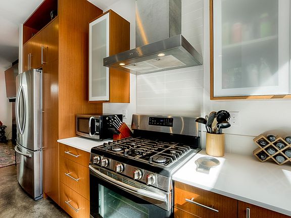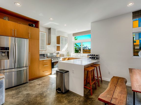 What a stunner! Sleek, modern townhouse with high ceilings, hardwood and concrete floors and a thoughtfully designed floor plan that includes an open kitchen with chef grade appliances. This summer you will love entertaining on a very large private deck with views of Mt Rainier and the city. Come fall, you will appreciate the gas fireplace and the radiant floor heating throughout! Great location with convenient access to downtown Seattle, the I.D., light rail and both I-5 and I-90.