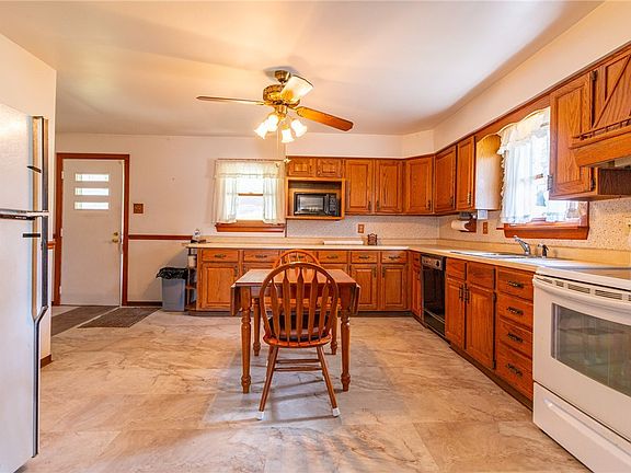 The New Kensington area is close to outdoor spaces like parks and trails, providing opportunities for hiking, biking, and enjoying nature. Local spots like the Allegheny River and nearby parks can be appealing for those who enjoy outdoor recreation. This 4-bedroom, 1 ½-bath ranch home offers practical living space and several updates. The living room has parquet flooring underneath the carpet. The eat-in kitchen has been updated, with a new tile floor installed in 2023, along with an electric stove and dishwasher. The rest of the house features hardwood flooring under the carpets, and the windows have been updated. Both the full bath and powder room have been updated as well. The lower level includes a 1-car garage with an automatic opener, a partial basement for storage, and a laundry room with a washer and dryer. Outside, you'll find a large yard and a generator hookup. There are covered porches in both the front and back, as well as additional off-street parking
