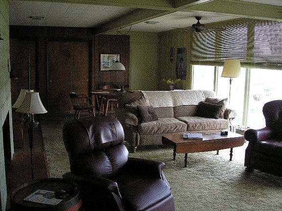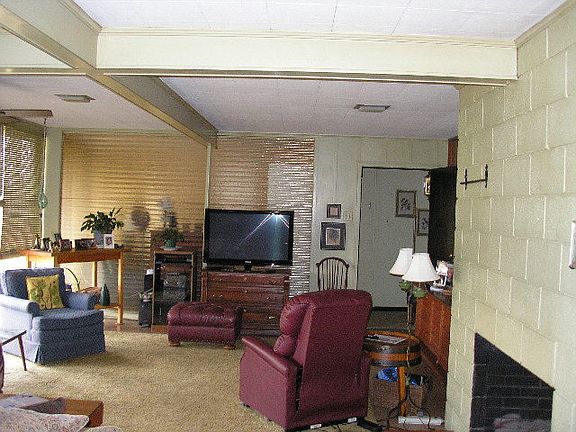 Beautiful home on a relaxing tranquil one acre property. Floor to ceiling windows all along the back side of home, onlooking a large deck and a lake. 3 bedrooms, 1 and a half bath. Two Fireplaces. Central gas. Handicap Accessible. Near Hillcrest Golf Course. A must see! SUPRA on the side door, Under the Carport.