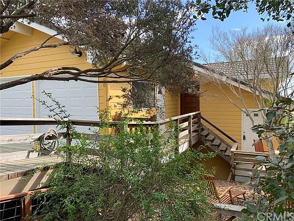 Spectacular views of the rolling hills are found throughout this home along with the golden rays of sunshine. You can see both the sun & moonrise from this location. This home is incredibly charming in design features, and radiates the warmth of living in the Top-Of-The-World area of Cambria. The large picture windows of the living room capture the views and echo the shape of the tall, peaked ceiling accented with beams. There is a gas stove fireplace, wood floors, and access to the sunny deck for outdoor time. The kitchen is open to the living area and has glowing wood cabinetry and blue tile to remind you of the sea. Numerous cabinets, a sink overlooking the views, and angled windows above the stove create a beautiful & functional space. The home has 3 bedrooms and 2 bathrooms. The 2 downstairs bedrooms have large windows for morning sun and open onto another deck with a lovely fenced yard. The master bedroom has a sliding barn door into the gorgeous bathroom with solid surface counters and large tiled shower. At the landing between floors there is access to the front deck and garden. Upstairs is the 3rd bedroom and bathroom. The laundry is located in the garage. This home exudes charm and quality, so does the furniture which is included. There is a bonus workshop area that has plenty of room for additional storage. The two fenced yard space are good for pets. This Cambria cottage has a tile roof, tankless water heater and low maintenance yard and is in move in condition.
