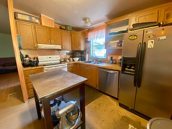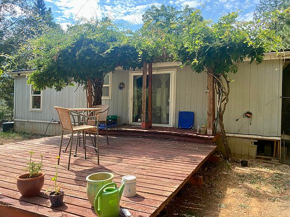 Nestled on 11.3 acres, this charming double wide manufactured home features 3 bedrooms and 1.5 bathrooms with spacious floor plan. Ample sized kitchen with newer appliances and plenty of counter space and storage. Large primary suite with sliding glass door that leads to deck and garden area. Detached 2 car garage with bonus room for extra storage. Upgrades include newer metal roof. Enjoy true country living with great trails leading throughout the property. Wood burning furnace and solar water heater with generator hookups will never leave you without heat or water. Secluded but still close to I-5, This is a must see!
