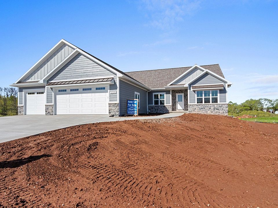 Welcome to your own personal oasis in nature, featuring unparalleled craftsmanship, every detail is meticulously crafted to perfection, showcasing top-tier construction & timeless elegance in this home. Grand kitchen hosts 8' island, pantry & buffet counter where floating shelves & cabinets offer both a visual appeal & plenty of storage. Awe-inspiring cathedral ceiling over the dining area w/a stunning focal point accent wall that captivate the eye & elevate the entire rooms' aesthetic. Luxurious owner's suite w/spa-like features. Garage entry offers welcoming wood toned locker w/bench & drop zone. Expansive, state-of-the-art garage-1,292 sq ft insulated 3.5 stall garage w/3rd stall tandem & stairs to LL. LL offers possibilities for expansion w/6 egress windows & rough in for future bath.