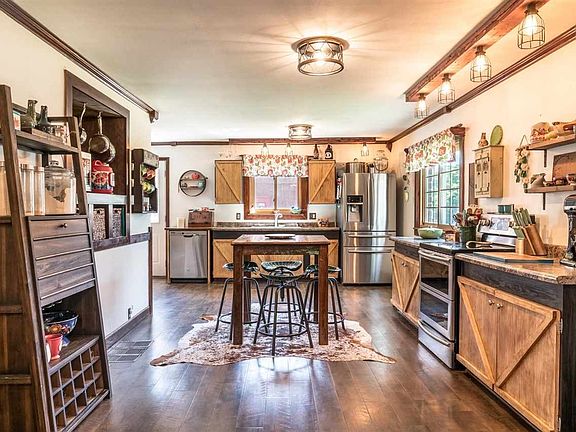 Check out this peacefull treat. Close enough to the city but far enough away to rest and relax from the hustle of everyday life. This beautiful home sits on 4.71 acres and is surrounded by farm fields. New roof, new flooring, new lighting, updated bathrooms and newer kitchen appliances. The vaulted ceiling in the living room and spacious open concept kitchen/dining room combo allows for large gatherings or birthday parties. The over sized two car garage and barn appeals to any buyer who needs extra storage space. Turn the key and move in! Contact your REALTOR today for your guided tour.