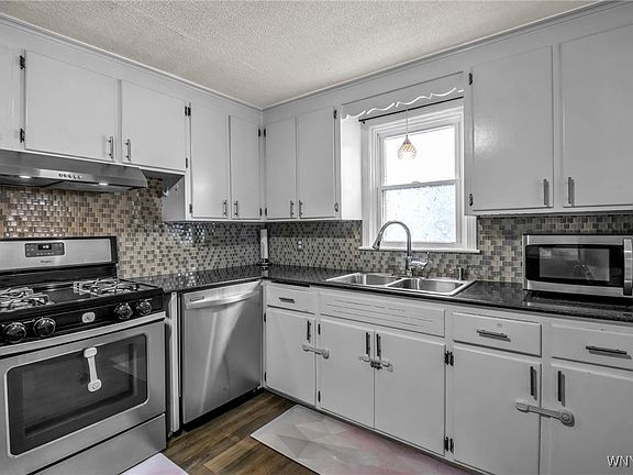 Welcome to this beautifully maintained Cape-style home located in Amherst, NY! Offering 4 bedrooms and 2 full bathrooms, this charming residence blends classic character with modern updates. Step inside to a spacious eat-in kitchen featuring granite countertops, stainless steel appliances, and plenty of room to gather. The main level boasts a bright and inviting living room, a full bathroom, and two versatile bedrooms—one currently used as a sitting room, easily transformed into a dining area, guest room, or home office. Upstairs, you'll find two generously sized bedrooms offering comfort and flexibility for family or guests. The finished basement provides even more living space with a large family room, a dedicated den or office, and a second full bathroom—perfect for entertaining or working from home. Notable updates include a new furnace and A/C system (2023), sump pump (2020), a newer roof, updated flooring, and vinyl windows throughout. Outside, enjoy the fully fenced yard—perfect for play, pets, or gardening. Relax in the sunroom, entertain on the patio under the covered awning, and take advantage of the spacious 1.5-car garage. A private road behind the home offers bonus parking and easy backyard access. Located in the highly regarded Amherst School District, and just minutes from shopping, dining, parks, and entertainment. Join us for open house on Saturday April 5th from 1 PM to 3 PM. Offers are due by 12 PM on April 10th.