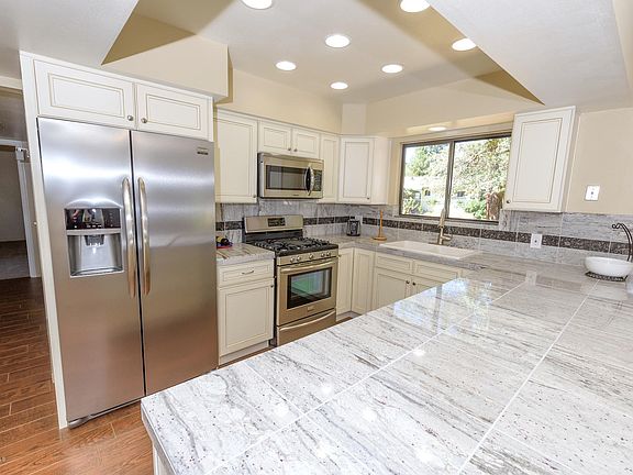 Come see this large updated home just minutes from downtown Prescott, located in the desirable Forest Village neighborhood. This home has a great Modern 1722 sq. ft. floor plan with 2 large bedrooms both with direct access to 2 private bathrooms, living room, fire place, AC, gas heat, open kitchen and dining area, Great closet space, large pantry & laundry room, Updated with new cabinets, granite counter tops, custom stone work, Flooring & Paint. Large back yard, beautiful shady trees, spacious deck, large storage shed with power, , RV pad, boulders. All appliances included, furniture negotiable (excluding art work). Agent related to seller.
