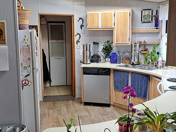 Great location on a large lot (nearly a quarter acre) for this 3 bedroom, 2 bath, 1440 sq ft manufactured home. Wonderful solar exposure in an area that could easily be called Sun Terrace and just a few blocks from shopping and bus lines. Large open floor plan and a large primary bedroom suite with a soothing soaking in the bathroom. The home comes with large ground-mounted solar array with battery backup. Home is not on a permanent foundation and in need of new flooring in a portion of the house. The seller is willing to negotiate a flooring credit.