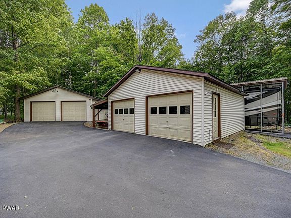 NO COMMUNITY OR HOA! PRIVACY!! GARAGES!! Watch Eagles & Hawks while relaxing on the front deck, from the back deck watch deer, turkeys & rabbits passing through. Welcome to your private sanctuary nestled on nearly 4 acres of lush, wooded land in Lake Ariel. This exquisite home offers the perfect blend of tranquility and convenience, private drive from the main road and close to Lake Ariel and Honesdale. With 4 large bedrooms and 3 bathrooms, this spacious residence provides ample room for your family and guests. The main level features a large primary bedroom suite, complete with vaulted ceilings and lots of windows. Radiant heating throughout the house, keeping you warm in winter plus two split unit air conditioning system allowing you to stay cool during the summer heat., Beds Description: Primary1st, Beds Description: 2+Bed1st, Baths: 1 Bath Level 2, Baths: 2 Bath Lev 1, Eating Area: Dining Area, Beds Description: 2+BED 2nd