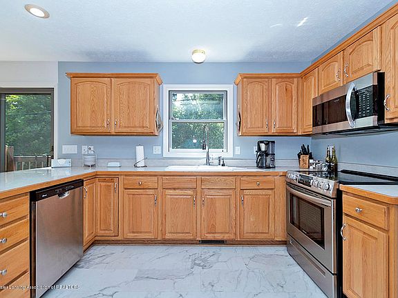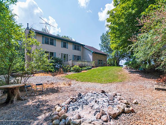 Where do you start? This one owner custom built 2 story home is situated just west of the Williamston City limits, (2/10ths of a mile), in Wheatfield Township, east of the Wheatfield Golf Course, on 2.26 very private wooded acres with nearly 500 feet of frontage on Deer Creek. Highlights include 5 good sized bedrooms, 3 1/2 baths, formal living and dining rooms, family room, recreation room, craft room, 2 full kitchens, French, multi panel glass doors off master, access a beautiful 370 square footbonus room, full finished daylight basement, 2 1/2 car garage/finished/heated plus storage alcove with shelving, 12 foot, ceiling with 4 foot, overhead storage, large front porch/deck, greenhouse with electricity, heat and lights, pergola/electricity/concrete table. Main level entry foyer has formal dining to the right, formal living to the left, 1/2 bath. Back of this level includes kitchen, abundant cabinets and counter space, new stainless appliances 2020, open to breakfast room and family ro