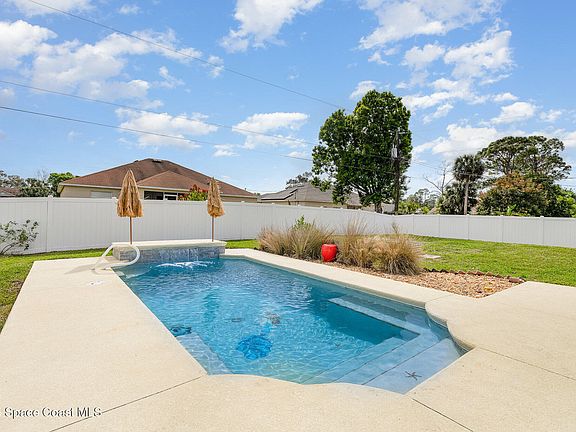 Welcome to your dream Florida oasis! This charming home showcases a stunning pool with a tranquil waterfall that sets the perfect mood for outdoor relaxation. Inside, you'll find spacious open-concept living areas adorned with cathedral ceilings and gleaming tile floors throughout. The kitchen impresses with elegant granite countertops, while fresh interior paint adds a crisp, clean feel. Security and peace of mind come standard with impact-rated doors and windows. The newly installed vinyl fencing encloses a generous yard, perfect for family gatherings or gardening enthusiasts. Located near Heritage High School and Hammock Landing, this home combines comfort with convenience. Step into resort-style living today!