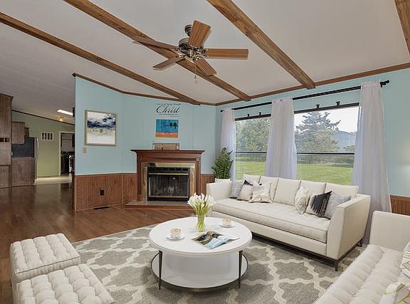 Are you looking an affordable home in the country? Here you go..1600 sqft ranch with a big 2 1/2 car gar, Huge lot with fruit trees. Quiet short street w/no thru traffic. Lots of windows make interior bright & cheerful. Great floor plan with two living areas. The front living room is inviting & the familyroom has a Wood burning fireplace. Vaulted ceilings thru out, skylights, ceiling fans, & all newer appliances. Master bedroom with a walk-in closet, full bath features a double vanity, separate shower & soaking tub. Many newer improvements like the water heater in 14, HVAC in 14, and more.. Outbuildings are allowed too..