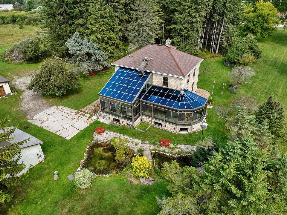 Old World Charm Awaits! Immaculate 1850's Farmhouse with many selected updates situated on 5.09 acres located in the outer city limits of Manitowoc.Featuring a huge bright & cheery four seasons room addition where the sellers sat and enjoyed nature as it visited them from their private secluded backyard which featured a Koi Pond sitting area. Sellers have restored the original wood trim inside the home, formal living room, formal dining, den/office, wide stairway leading to the upper level featuring 5 bedrooms, a full basement with spacious rec room, full bath, updated HVAC & Geothermal systems & in-floor heat in the sunroom addition. A 3-car detached garage/shop with added storage buildings. All situated on 5.09 private peaceful acres. Come experience this haven today!