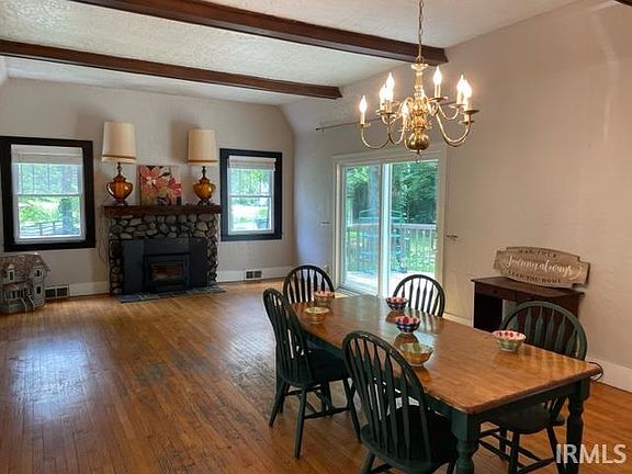 Over the bridge and thru the woods brings you home to this beauty nestled on over 4.75 acres complete with it's own stream. Home boasts a large great room with wood burning fireplace, hard wood floors, vaulted ceiling and gorgeous wood beamed ceiling. Kitchen has butcher block counters, open shelving, a full appliance package and all the charm! First floor master bedroom offers a window seat, double closet, hard wood flooring and en-suite bath with shower. Vinyl windows have been installed throughout along with a new patio door that opens out to the deck, 2 car garage with workshop has room for all the extras. This wonderul home is ready for its new owner. Conventional and cash buyers only.