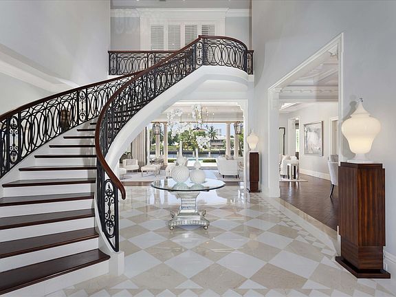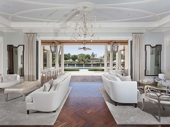 Directly fronting the Intracoastal on Royal Palms signature street, this designer-furnished Georgian-inspired estate offers comfortably elegant South Florida living. Mastering a mix of traditional architecture and relaxed modern sophistication, this tropical Georgian-inspired estate stands on 100 feet of direct Intracoastal Waterway frontage on Royal Palm Way, the signature street of Boca Ratons world-famous Royal Palm Yacht & Country Club. Designed by Affiniti Architects and constructed by luxury builder Mark Timothy, Inc., the six-bedroom residence gives classic style a chic, subtly glamorous inflection in designer-furnished interiors by Susan Connor of P&H Interiors which are featured in Luxe Interiors + Design magazine (Volume 12, 1).The refined symmetry of the architecture creates a beautifully flowing floor-plan with the more formal and casual spaces all opening their doors to expansive waterside loggias with a summer kitchen by the pool terrace, making outdoor entertaining a way of life. Exquisite finishes such as the intricate moldings and patterned hardwood floors are complemented by clean-lined furnishings in fresh, cool hues. The comfortable living areas easily transition from everyday use to social occasions with special features including the club room and catering kitchen. Upstairs, the extensive master suite is an exquisite private sanctuary with a waterside balcony, two baths, and an adjacent sitting room/office/gym. Picture perfect with impeccable attention to detail, this stunning residence is a Royal Palm estate of distinction.LocationRoyal Palm Way, Boca Raton, Florida. Boca Ratons prestigious signature address, Royal Palm Yacht & Country Club offers guard-gated seclusion in a premier location across from the legendary Boca Raton Resort & Club and the Atlantic Ocean beachfront. Mizner Parks world-class shopping and dining are close by, and Boca Ratons private executive airport is a convenient 15-minute drive.PropertyDirectly fronting 100 feet on the Intracoastal Waterway, this tropical Georgian-inspired estate built in 2010 is landscaped with stately palms and manicured gardens. A Chicago brick motor court sweeps to the formal entrance flanked by garages totaling four bays. With the waterway as a backdrop, the resort-like outdoor entertainment space centers on a sleek pool with spillover spa. Three loggias provide relaxing open-air living and dining spaces complete with a fireplace, summer kitchen, and cabana bath.ResidenceThis sophisticated residence is designer furnished in a total of 11,918 square feet which includes six bedrooms, seven full and three half baths, laundry rooms on both levels, an elevator, comprehensive audio/video systems, and a whole-house generator.First Floor: Inside the mahogany entry, the impressive two-story foyer is set off by a tone-on-tone marble floor, floating staircase, and modillion moldings. Waterfront views stretch through the 35-foot-long living room providing multiple seating areas with cross-beamed ceilings, herringbone-pattered hardwood floors, and a wall of sliding glass doors along the center loggia. Leading to the north loggia, the club room has an adjacent powder room and pub bar that also serves the library with beautiful wash-finished paneling and custom built-ins. Open to the living room and foyer, the elegantly molded formal dining room is adorned with a coffered ceiling and patterned hardwood floor. The adjacent catering kitchen/butlers pantry with powder room connects into the main kitchen which has a professional-grade Wolf range, Sub-Zero refrigerator, Miele dishwasher, stone counters, and custom cabinetry including unique glass-front display cabinets with windows to the outdoors. Open to the kitchen, the juniordining room is highlighted by a peaked, pecky cypress beamed ceiling, and flows into the family room with custom built-ins and glass doors to the south loggia. A guest/staff suite is off the foyer.Second Floor: Encompassing a large private wing, the