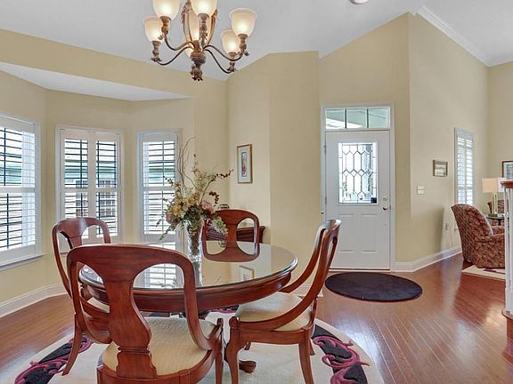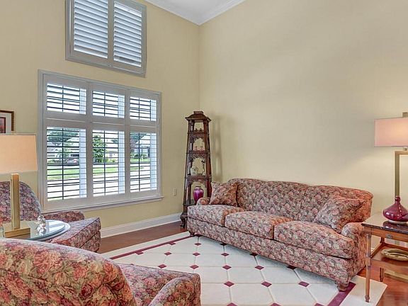 Spacious open floor plan in Village Grande with high ceilings, upgraded features and convenient location. Eat in granite kitchen with tile backsplash, breakfast bar, island and pantry closet. Gas fireplace in family room and vaulted ceiling and bay window in living room. First floor office/den, laundry and master suite. Master with tile shower, granite and 2 walk in closet. Rear deck with awning and covered patio lead to scenic open areas.