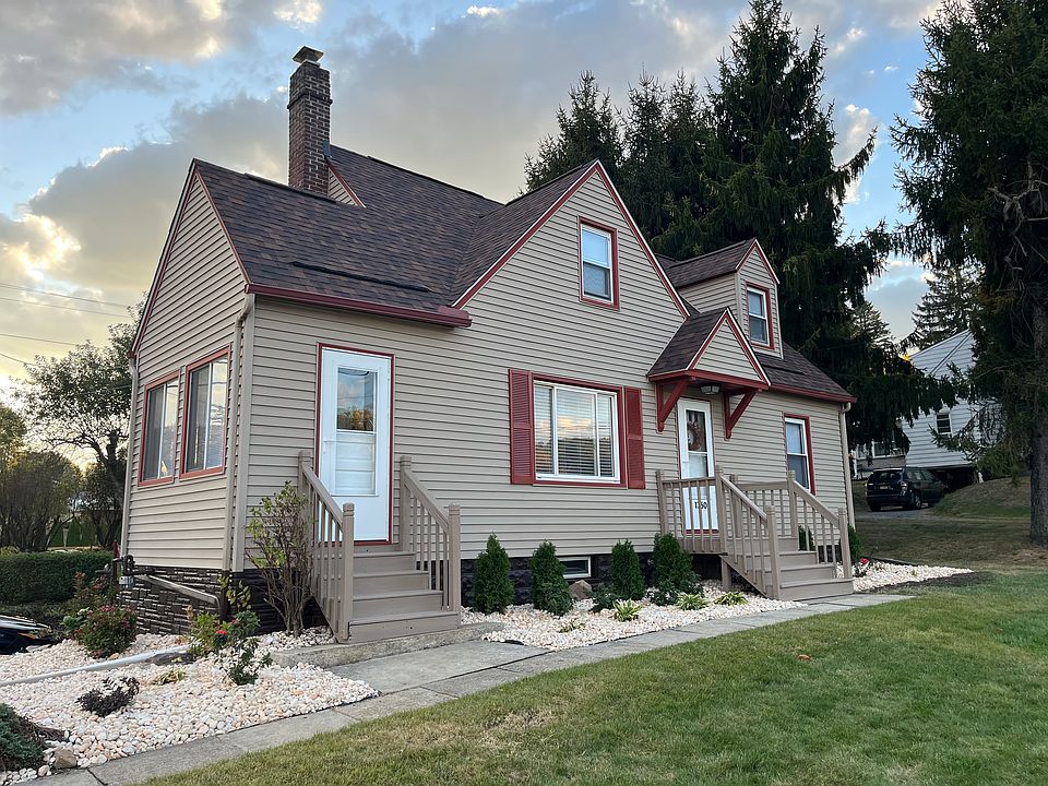 Charming, freshly painted, new laminate flooring, new carpets, hardwood flooring, new roof, new landscaping, 3 bedroom, one bath house. Large basement with fresh paint and new carpet. Outdoor shed included. Off street parking for three vehicles. Beautiful large backyard. Close to schools and shopping.