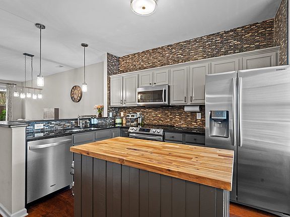 This tastefully upgraded townhome is conveniently located in Midtown, and is just minutes to everything you need! This owner has installed gorgeous wood floors on the 1st floor & in the owner's bedroom upstairs. The kitchen features granite countertops & stainless steel appliances including a refrigerator. The cabinetry has been painted a designer color, & a striking decorative backsplash stretches to the ceiling above the cabinets. The owner's bedroom features a stunning wood feature wall with geometric trim design and designer color. The owners bathroom features granite countertops and a tile surround shower. The outdoor patio is a peaceful haven surrounded by privacy fencing & will be a great place to relax & unwind, or just relax with a cup of coffee or the beverage of your choice. You'll appreciate the updated light fixtures and fans. An updated laundry room with shiplap walls & natural stained floating wood shelving will make you want to do laundry, & the washer/dryer is included! Negotiable items include custom built kitchen island, high-end umbrella on the patio, and the Murphy-Style wall desk.