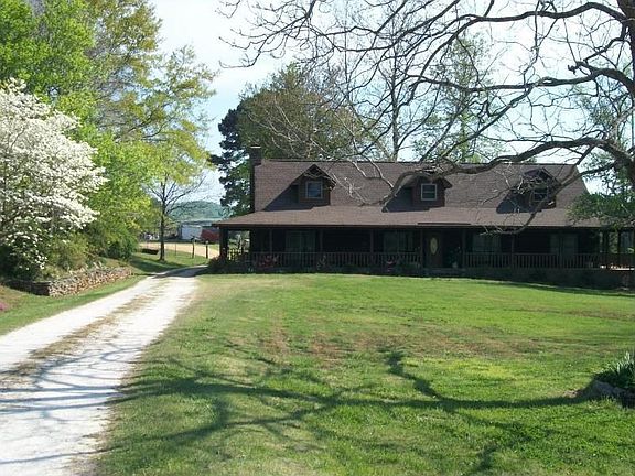 HORSE LOVERS DELIGHT! 36 acres with this cedar sided country home that has been remodeled and updated. hardwood floors, brick front fireplace with gas logs in spacious greatroom. vangard heaters offer back up heat. roomy kitchen with lots of cabinets and counter space, breakfast bar, pantry, built in desk and jenn air gas range. three spacious bedrooms and 1.5 baths downstairs, one bedroom and bath upstairs. roof and water heater only 2 yrs. old. property is fenced and cross fenced. barn and two carports. .5 acre pond and weogufka creek runs through back of property.