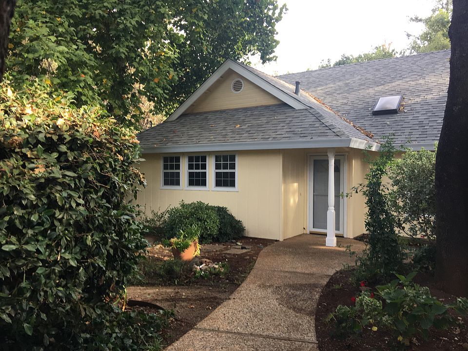 2 bdrm 2 bath custom made home with 10 foot cathedral ceiling. Lovely landscaped yard with large side patio, white picket fenced, Large storage area, Doll house with 10ft cathedral ceilings and electricity. In Law Studio with half kitchen and full bath.