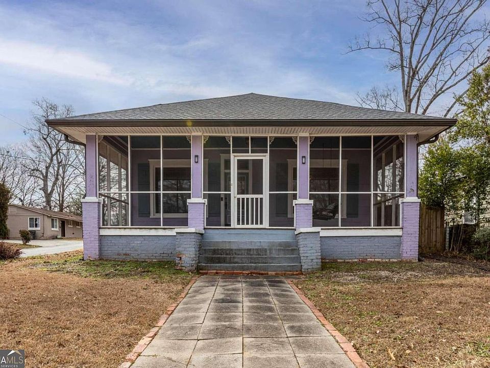 This historic 1930s bungalow is located in Frog Hollow and offers a unique and charming living experience. The large, fully screened front porch is an ideal spot to relax and enjoy a warm spring day with friends. Step inside through the classic bungalow original door and be greeted by a spacious 3-bedroom, 1-bathroom home. The free-flowing floor plan and beautiful hardwood floors throughout create a warm and inviting atmosphere washed in warmth and natural light. The kitchen boasts ample cabinet space and a large pantry, making it convenient for all your storage needs. The laundry is conveniently located in the kitchen for added convenience. The primary suite is spacious and updated, offering a comfortable retreat. Additionally, there are two guest suites or office/flex spaces, perfect for those who work from home. The back porch overlooks the deep and level backyard, creating a perfect setting for summer entertaining with friends and family. The shared drive, off-street parking, and privacy gate ensure convenient access to the home while ensuring safety and security on the large corner city lot. The neighborhood features sidewalks and street lights, making exploring enjoyable at any time. Only two short blocks away is Main St, the heart of downtown East Point, where you'll find shopping, dining, and entertainment options. Commuting to the city of Atlanta or the Atlanta airport is a breeze with the close proximity to the East Point Marta Station, which is just a short walk or bike ride away. Access to major highways such as I-75/I-85, I-285, and Hwy 166 is also convenient, and Hartsfield Jackson International Airport is less than a 10-minute drive away. Overall, this 1930s bungalow offers a historic charm with modern updates and a convenient location near downtown East Point and Atlanta attractions.
