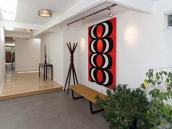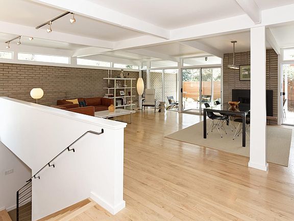 Incredible Mid-Century architect designed remodel completed in 2010. The original shell was kept to maintain the Mid-Century ambiance. All new interior including windows, electrical, plumbing, radiant in-floor heating main floor, cooling, lighting, SS appliances, on demand H2O & much more. The large entry with tile floor invites you to the open living & dining room with gas fireplace. The open kitchen features a large island, gas Dacor 5 burner cook top, cherry cabinets, Bosh refrig, dishwasher, convection oven, microwave/convection, custom back-splash and HanStone quartz counter tops. Main floor has wood floors including open stairs to bsmt. Master w/5 piece bath & walk-in shower, granite, custom tile & ELFA closet organizers. 2 addt'l bdrms 2/ELFA closet shelves plus bonus room. Custom iron rail on stairs to bsmt which has large family room w/wood-burning fireplace, 2 addt'l bdrms with egress windows and RI for bath ready to finish.