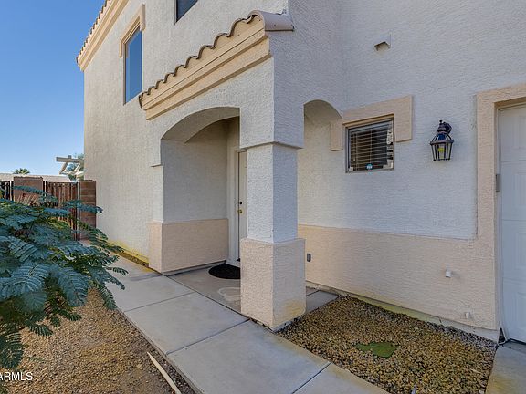 This spacious 4-bed, 2.5-bath home is nestled inside a secure gated community and offers all the comforts of modern living, plus a little resort-style flair with a community pool just steps away. Inside, you'll find an open layout that effortlessly connects living, dining, and kitchen spaces — perfect for both everyday living and entertaining. All four bedrooms are upstairs; peaceful separation!, while the main floor hosts a convenient half bath + laundry area. Outside, enjoy a covered patio and private yard ; your blank canvas for al fresco dinners, morning coffee, or just unwinding after a long day. Location is tight: quick access to Loop 101, nearby shopping, dining, and essentials. This is the sweet spot for families, professionals, or anyone who wants a blend of privacy + convenience