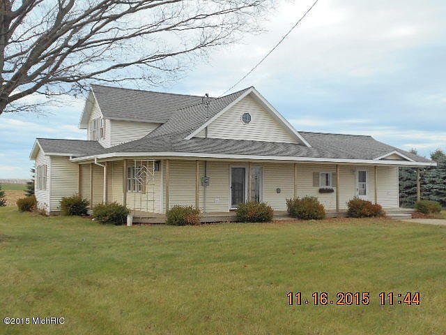 Clean, picturesque 5-acre farmhouse full of warmth, charm & instant appeal. Ceramic floor entryway takes you immediately to an oversized, dream laundry room & full bathroom. Large, luxurious kitchen with maple wood floor, oak cabinets & dining room. Spacious floor plan & cathedral ceilings take you through the living room boasting cozy gas fireplace w/custom mantle. French doors out to wrap-around porch for your family to spend the evenings enjoying incredible views. Large master bedroom & secon d full bath with whirpool tub on main level. Two bedrooms on upper level boast ample closet space & organization. Beautiful 6-panel solid wood doors throughout. 30x24 2-stall garage with bonus workshop space. Unfinished 6x22 attic space for potential additional room.