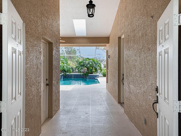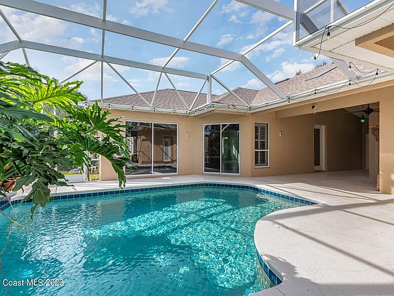 WOW what a Home...WOW what a Location...WOW, WOW, WOW what a VIEW...Amazing Courtyard Pool Home on one of the best lots in Oak Grove in West Melbourne...QUALITY Construction...Loaded with Features...Meticulously Maintained & Updated...Truly Move in Ready...3 bedroom, 3 bath, 2 car garage with Open Concept Kitchen & Great Room, Eat in Nook plus a Formal Dining Area plus a Study, either of which can be great Flex Spaces...One Bedroom & one Full Bath is completely separate from the main home across the Pool Courtyard...Could make a GREAT home office, very private & quiet, a gym, multi-generational suite, true guest suite or a teen get away...OPTIONS are limitless...New Roof January 2020...Solar Heated & Screened Pool...West Melbourne Location makes the home close & convenient to everything... everything...