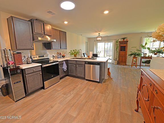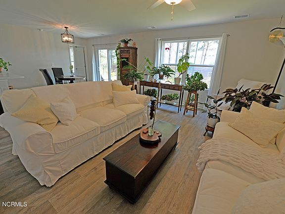 Begin and end your days in your very own private and nearly new retreat surrounded by easy-care native flowering shrubs and perennials. A six-foot wood privacy fence and a wooded berm encompass your oasis. Inside this one-year-old home you will find many upgrades including ceiling fans in every room, beautiful light fixtures, solar tubes, stainless steel pull-out kitchen drawers, a commercial farm sink & faucet, drawer pulls, exterior venting added to stove hood, window screens, fencing and gutters. The open floorplan with large windows to view your garden and a split bedroom concept makes this home a home! Turnkey and ready for you to make memories! Make an appointment and do not forget to look behind the property at the field of sunflowers smiling at you. The community of Eagle Creek is near Brunswick Community College, a short drive to the beach, historic Southport, Wilmington and Myrtle Beach.