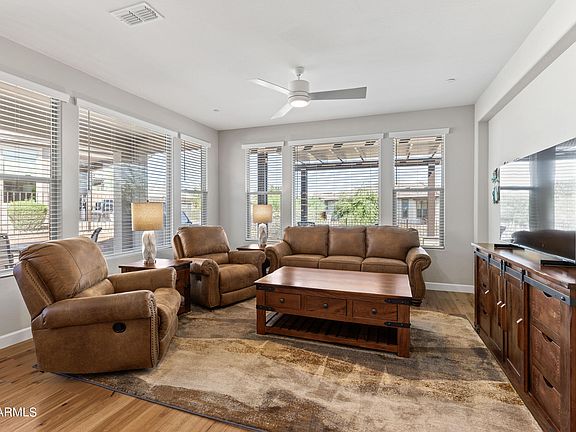 Welcome to luxury living redefined in the sought-after Golf and Social community of Trilogy at Verde River! This stunning 2-bedroom, 2-bath home has been meticulously upgraded to offer the ultimate in comfort, style, and convenience. Step inside and feel the sophistication, with Shaw engineered hardwood flooring throughout that adds both elegance and durability.