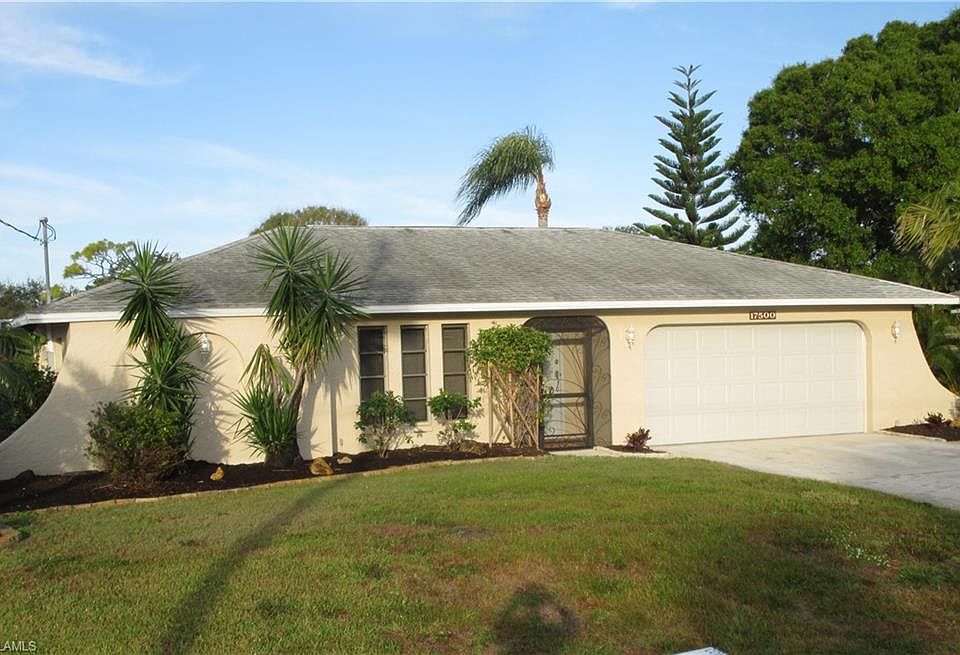 Own a nicely updated 3-bedroom/2 bath pool home in San Carlos Golf Course on a great street and convenient to schools, to shopping, to I-75 and to FGCU. Kitchen opens to the living and family room areas and features stainless-steel appliances, granite counter tops and solid-wood cabinets. Relax on the lanai with its western exposure, and enjoy the sunsets with an unobstructed view over the golf course. The solar-heated pool and lanai are fully screened-in. The family and master bedrooms feature a vaulted ceiling. Premium vinyl plank flooring has recently been installed in living, family and master bedroom areas. Most lighting and ceiling fans have been replaced with a more modern appearance and integrated LEDs. House was built in the early 80s with solid CBS walls (cinder block with stucco) - CBS is termite and rot free! The exterior has just been painted and the landscaping spiffed up (with a grandfathered well/sprinkler system). Plenty of room in the large 2-car attached garage with a hurricane resistant sectional door. Why buy a brand-new house for more money, no pool, limited view, smaller garage and HOA fees, when this is a great house in a great neighborhood that is available