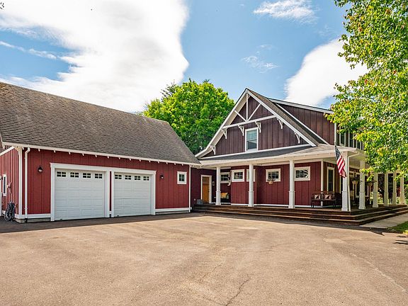 Live on a farm, on an island, close to a city! This charming family farm home sits on 10 acres in the peaceful setting of Sauvie Island with unobstructed territorial views. Comfortable and cozy, built and designed in 2001 with hickory and slate flooring, knotty pine ceilings, gas, wood, and electric fireplaces, enclosed heated sunroom, sliding glass doors, bonus room/office present the ideal home for relaxing, farming, or entertaining guests. Primary suite on the main with walk-in closet and jacuzzi tub. Two bedrooms upstairs, 2.1 bath, kitchen with slate countertops and island plus a walk-in pantry.Covered wrap-around front porch and patio, level lot, fenced-in yard, security system, gas generated back-up electricity. Paved driveway, ample parking, and attached two-car garage with built-in dog bath. Huge barn with canopy, electricity, heat, and half bath. Under farm and forestry tax assessment program with organic Christmas tree farm. Truly a special property in a magical setting!