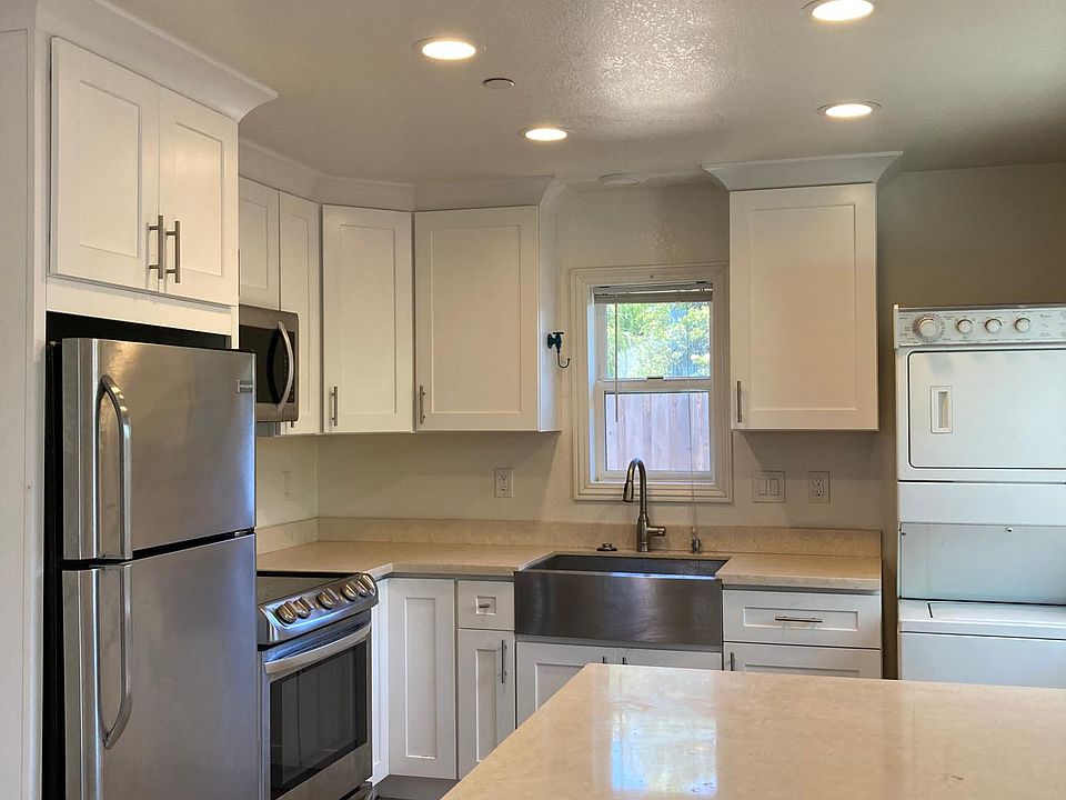 Fully renovated 2 bed/1 bath small cottage nestled in the hills of Castro Valley. Quiet neighborhood and only mile from Lake Chabot Trails. Private entry, fenced yard, storage shed, and off-street parking. Custom kitchen with stainless steel appliances. Washer/dryer in unit. AC plus ceiling fans in both bedrooms. Castro Valley Schools, Proctor Elementary. Separate utilities from the main house. Prospective tenants are required to fill out a credit application ($20) and have a FICO score above 700. Rent is $2,650/month and includes garbage and landscaping (tenant to pay all other utilities). Security deposit is $5,000. A small dog or cat will be considered for no extra charges/rent. No smoking. One year lease. Rent is $2,650/month and includes garbage and landscaping (tenant to pay all other utilities). Security deposit is $5,000. A small dog or cat will be considered for no extra charges/rent. No smoking. Prospective tenants are required to fill out a credit application ($20) and have a FICO score above 700.