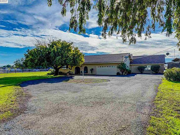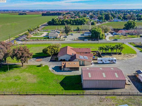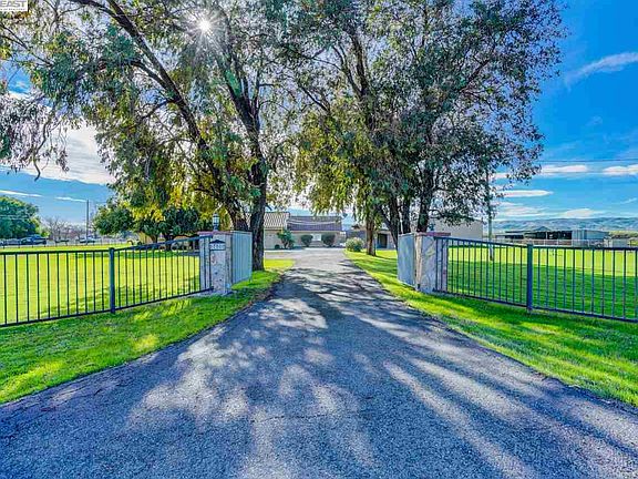 RARELY AVAILABLE 2.5 acre ranch estate. Single level home with 2 master suites and 6 total bedrooms. Indoor pool, Spanish courtyard, tumbled Travertine, marble, and crown molding throughout. Highly desirable floorplan. The property is truly remarkable; 40x60 insulated workshop with cement floor, roll up doors, bar and kitchenette, industrial shelving, and 220 & 110 power. 4-stall barn, pump house, tool shop, covered structures. Property is irrigated with automatic sprinklers as it was once an orchard. Private well provides plenty of water for home and irrigation. Plus irrigation rights.Completely gated with front formal entry to home and rear entry to commercial part of property. This property has tremendous potential and endless possible uses. A rare and exquisite diamond in need of a little polish. Fresh carpet and paint would make this home move-in ready! If commercial or other use is desired, please investigate. Agent nor seller make no representation as to possible uses.
